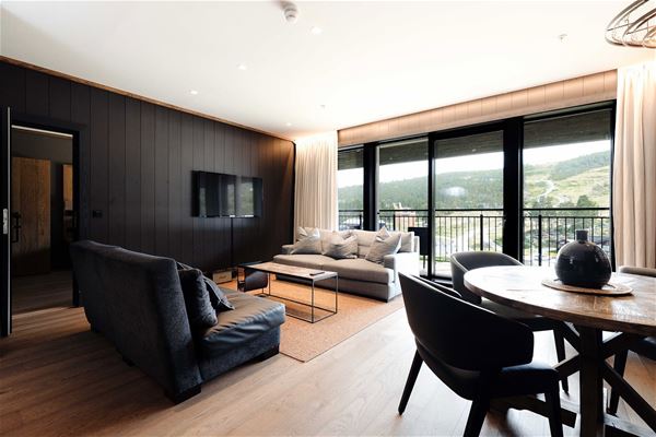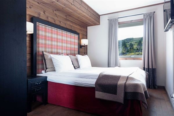 Unsere Doppelzimmer sind geschmackvoll eingerichtet und verfügen über bequeme Doppelbetten, ein Schlafsofa für einen Erwachsenen oder zwei Kinder, einen Flachbildfernseher, ein elegantes Badezimmer und eine Sitzecke. Die meisten Zimmer haben eine Terrasse oder einen Balkon mit Blick auf die Pisten, den Ustedalsfjord, Hallingskarvet oder Geilo. Einige Zimmer sind mit einem Schreibtisch ausgestattet.