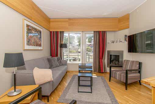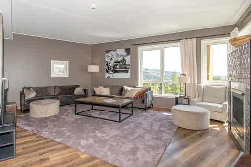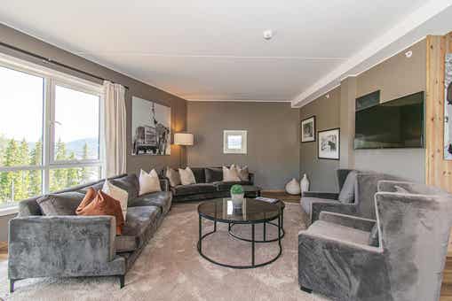 Radisson Blu Trysil Prestige ligger ved Turistsenteret. Ferienwohnung in der dritten Etage, 8+2 Gästebetten, 148 m2, Wohnzimmer mit integrierter Küche, 4 Schlafzimmer, 3 Duschen, 3 WC.