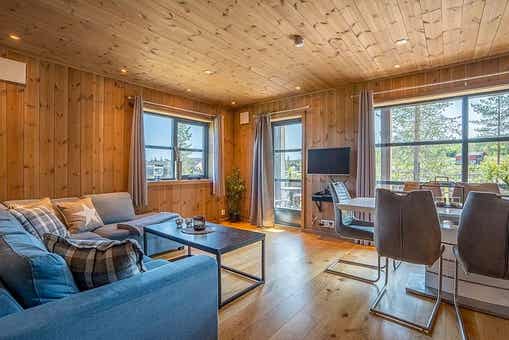 Trysiltunet liegt bei Turistsenteret. Ferienwohnung im ersten Stock, 6+2 Gästebetten, 80 m2, Wohnzimmer mit integrierter Küche, 3 Schlafzimmer, 1 Duschen, 1 WC, 1 Sauna.
