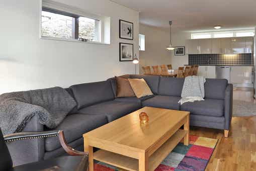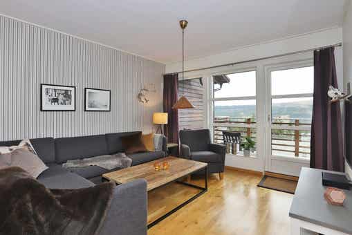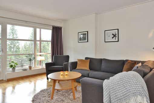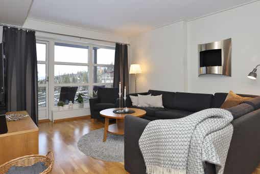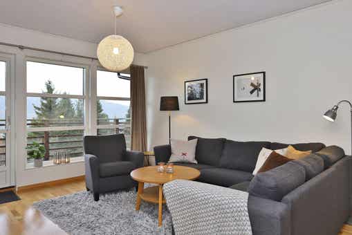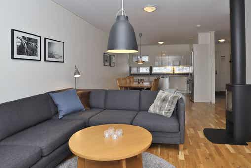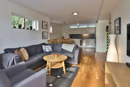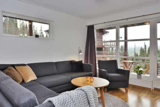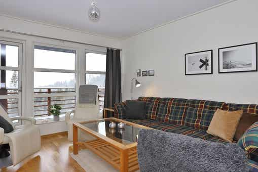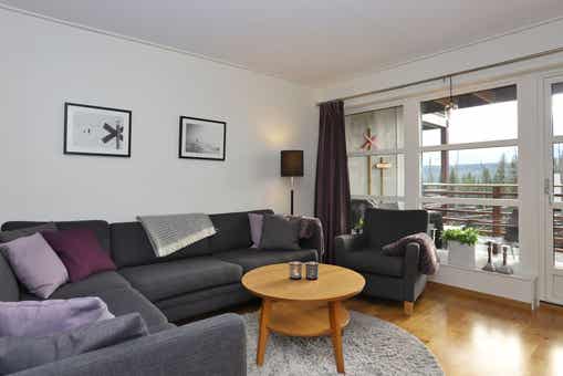 Bear Lodge liegt bei Åre Björnen. Ferienwohnung im Obergeschoss, 6+1 Gästebetten, 84 m², Wohnzimmer mit integrierter Küche, 3 Schlafzimmer, 1 Dusch, 2 WC, Sauna.