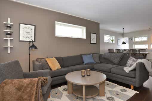 Sadelvägen liegt bei Åre Björnen. Ferienwohnung in einer Doppelhaushälfte über 2 Ebenen, 8 Gästebetten, 94 m², Wohnzimmer mit integrierter Küche, 4 Schlafzimmer, 2 Duschen, 2 WC, Sauna.